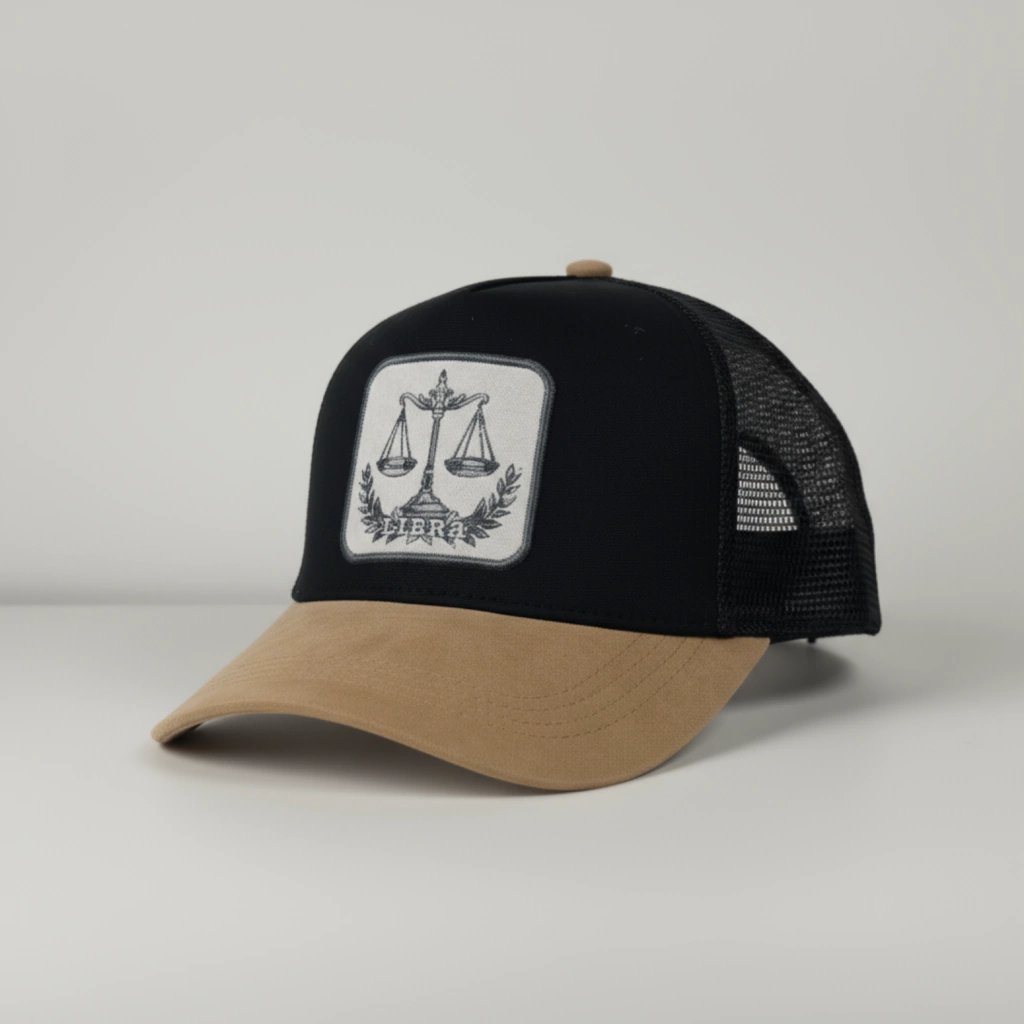 La gorra Libra Runfla refleja ese equilibrio con un diseño limpio, proporciones perfectas y un símbolo zodiacal aplicado en DTF con efecto bordado tridimensional, que aporta textura y sofisticación visual.